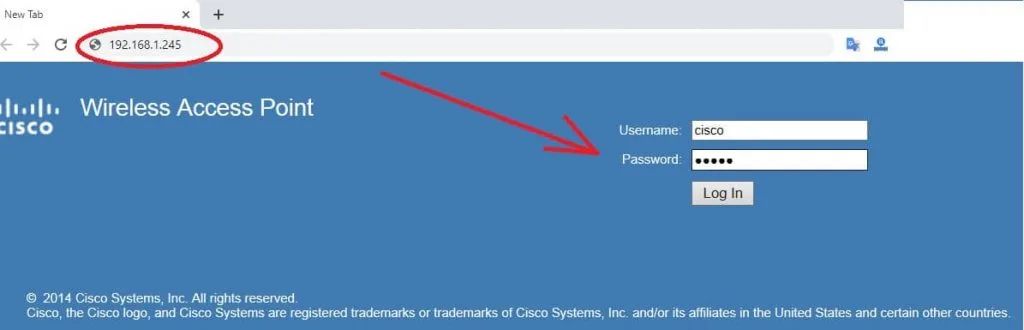 3.通过常见的思科路由器登录IP地址:192.168.1.245