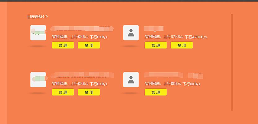 3、这样我们就可以看到路由器的详细信息,如果你感觉网速过慢,可以将陌生的设备禁速,还可以经常修改WiFi的密码,防止陌生人蹭网。